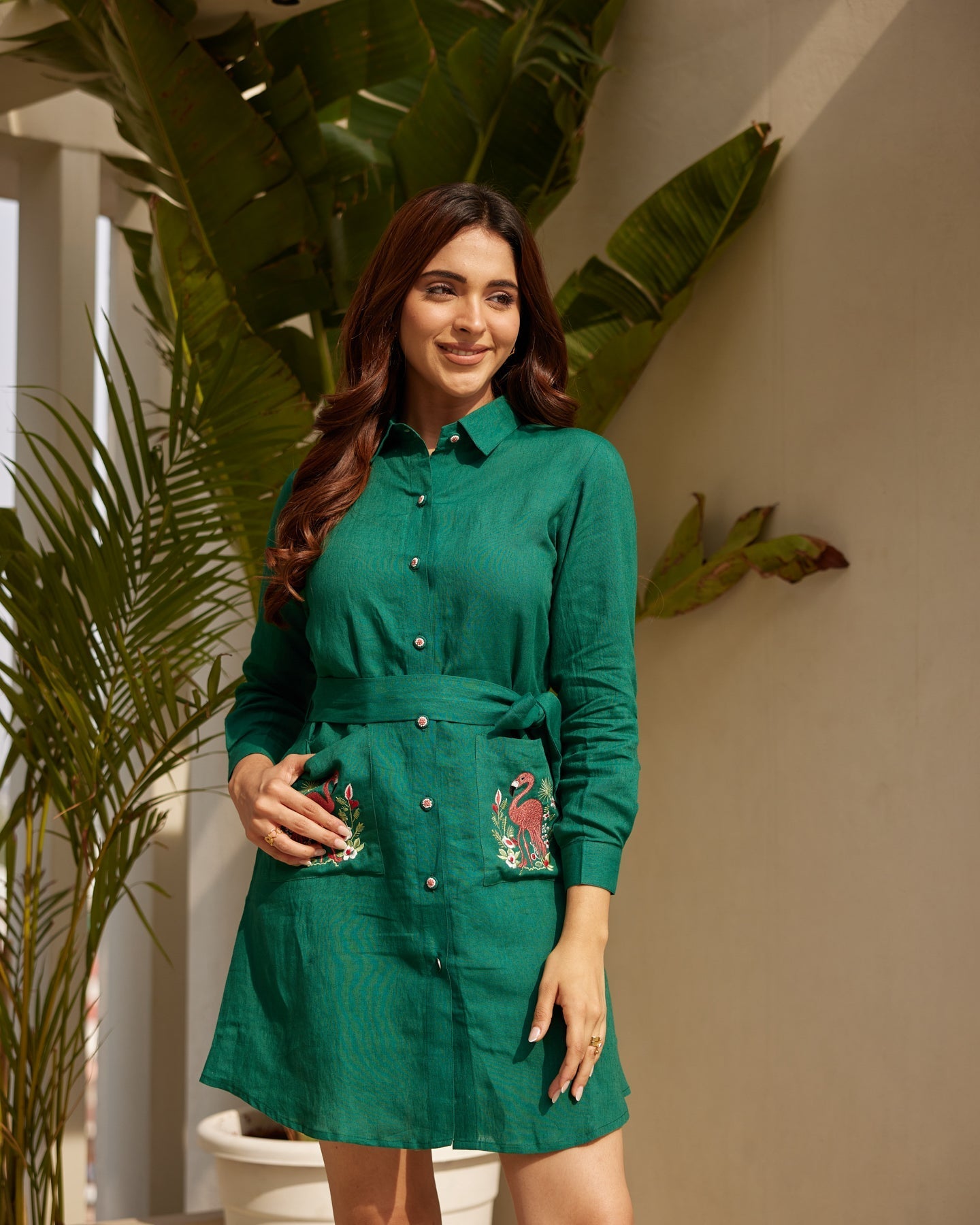 The Basic Green Linen Dress is your go-to for a classic look that never goes out of style. This dress features a shirt collar and full sleeves, made from high-quality linen that offers exceptional comfort. The solid green color provides a touch of nature-inspired elegance.