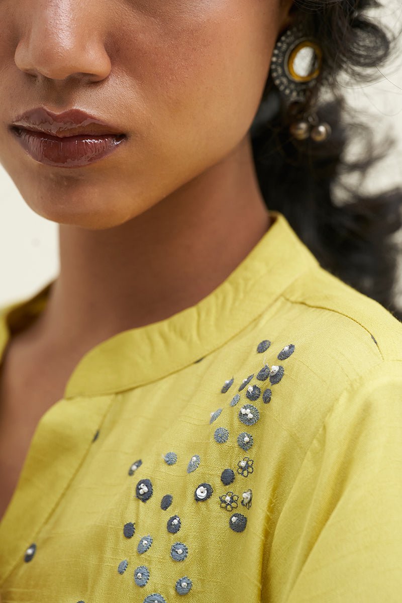 Celery Green Bemberg Raw Silk Embroidered Co-ord Set