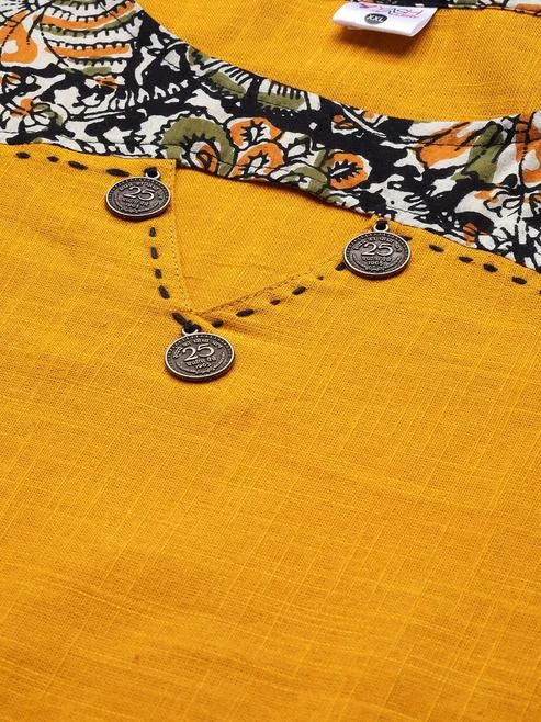 Cotton Blend Kalamkari Print Kaantha Work A-line Kurta