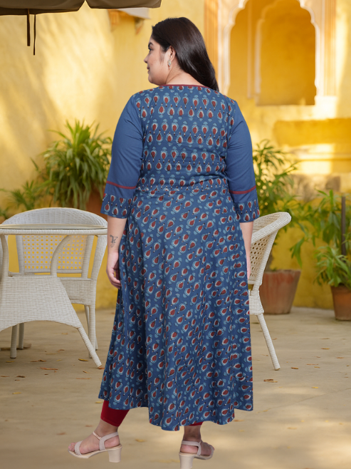 Cotton Floral Printed Pintucks Anarkali Kurta