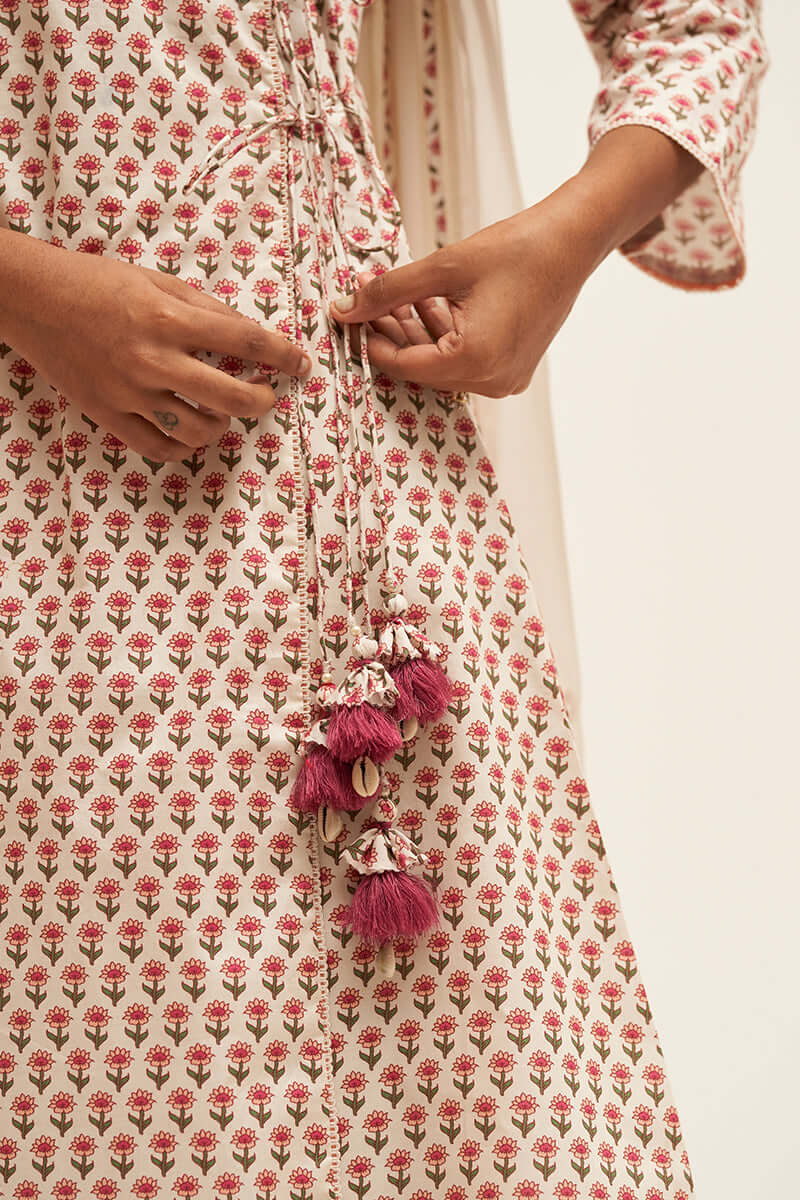 - Top- Mughal Flower Printed Angrakha With Dedicate