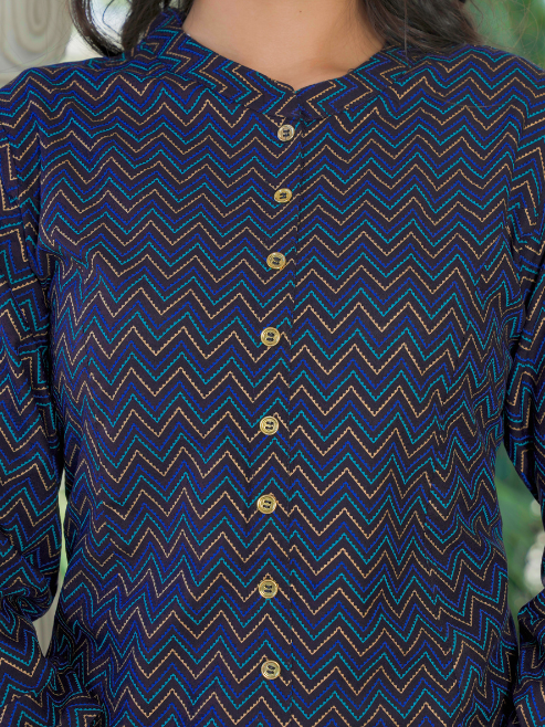 Fashion Plus Store Women`s Zig Zag Printed Anarkali Kurti (Blue)