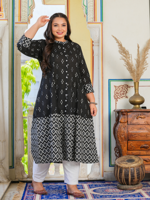 Fashion Plus Store Women's Cotton Ikat Print A-Line Kurta
