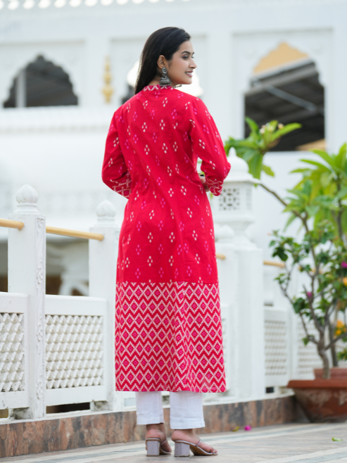 Fashion Plus Store Women's Cotton Ikat Print A-Line Kurta