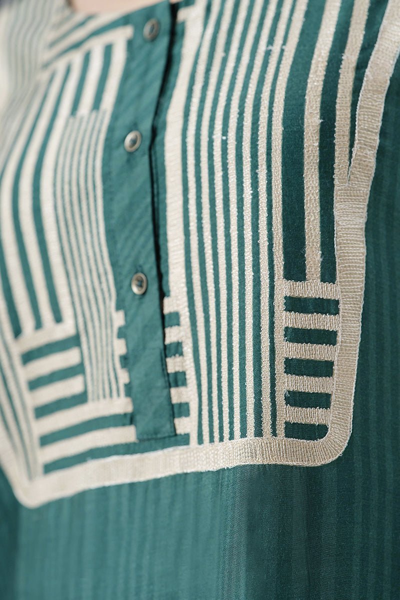 - Stripe and maze print kurta with intricated hand