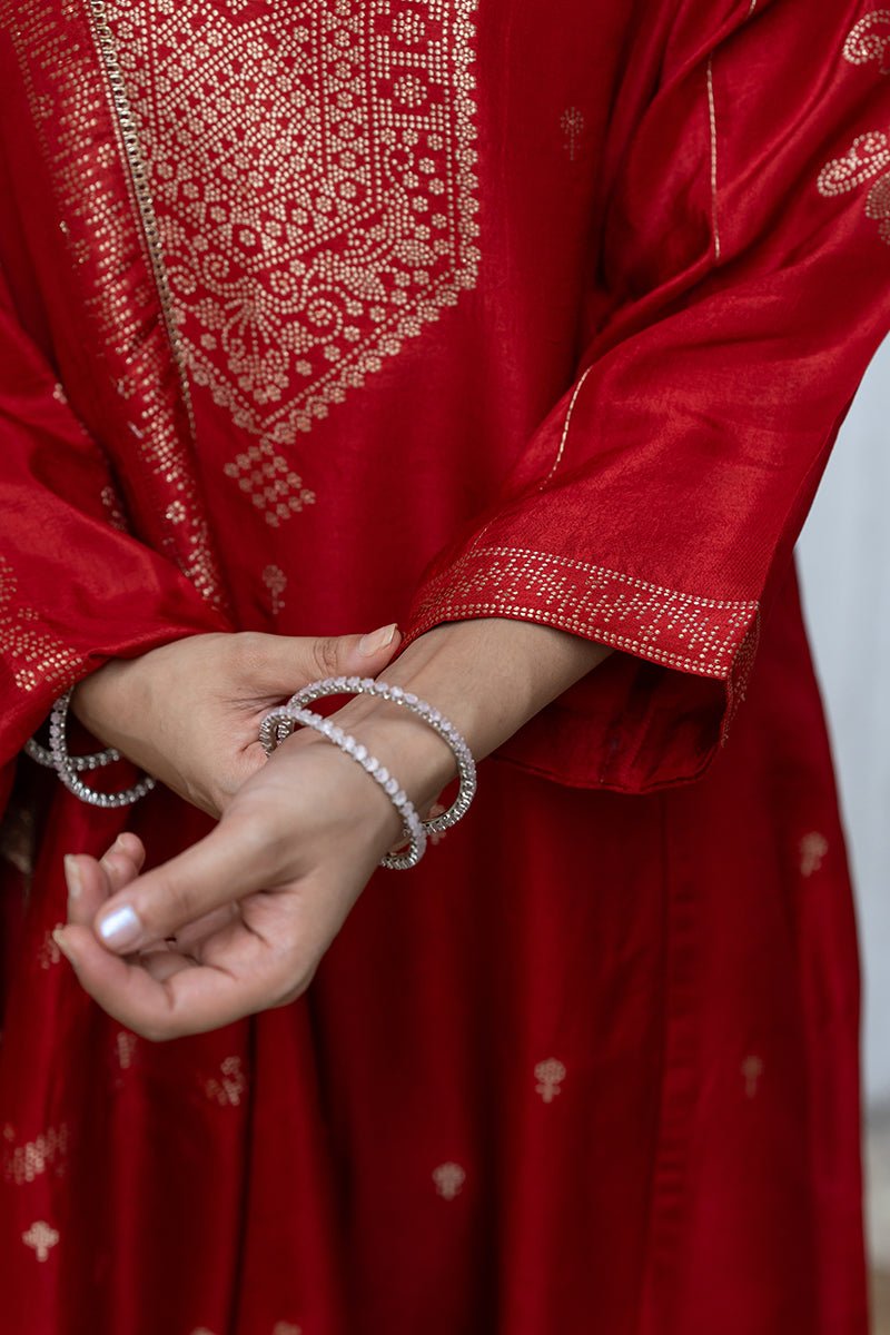 Salsa Red Woven Salwar Suit With Zari Woven Raw Silk Dupatta