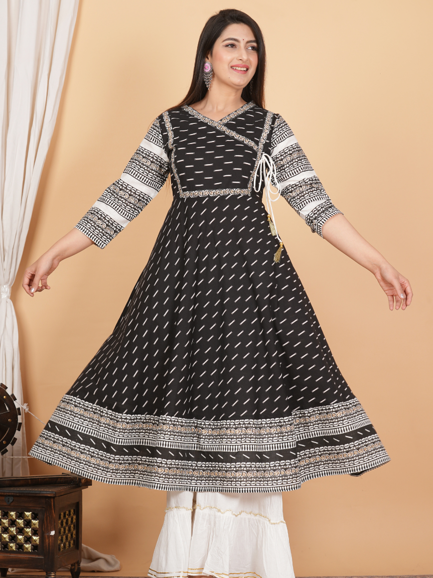 Cotton & Cotton Slub Ikat Printed Anarkali Kurta Dress